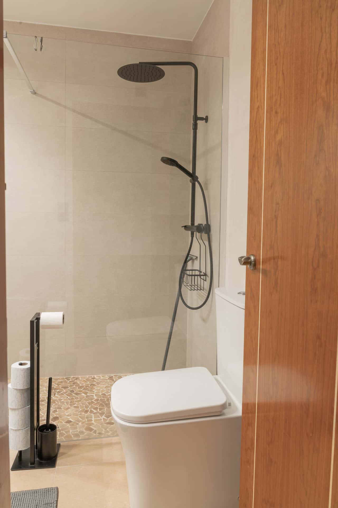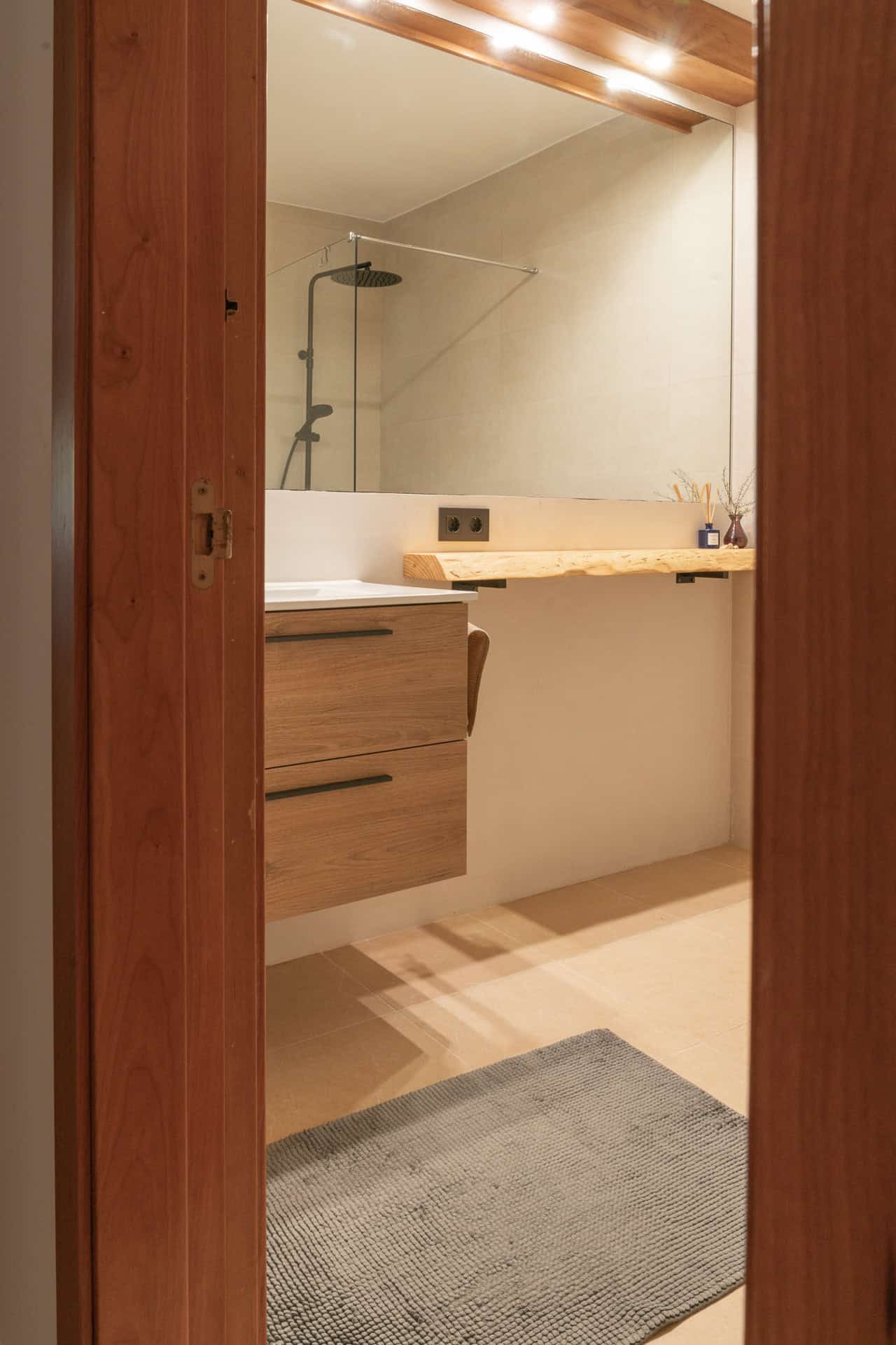 It comes with an own desk, so you can work here as well or have video calls. The room has a modern bathroom with rain shower, which you share with another room.
