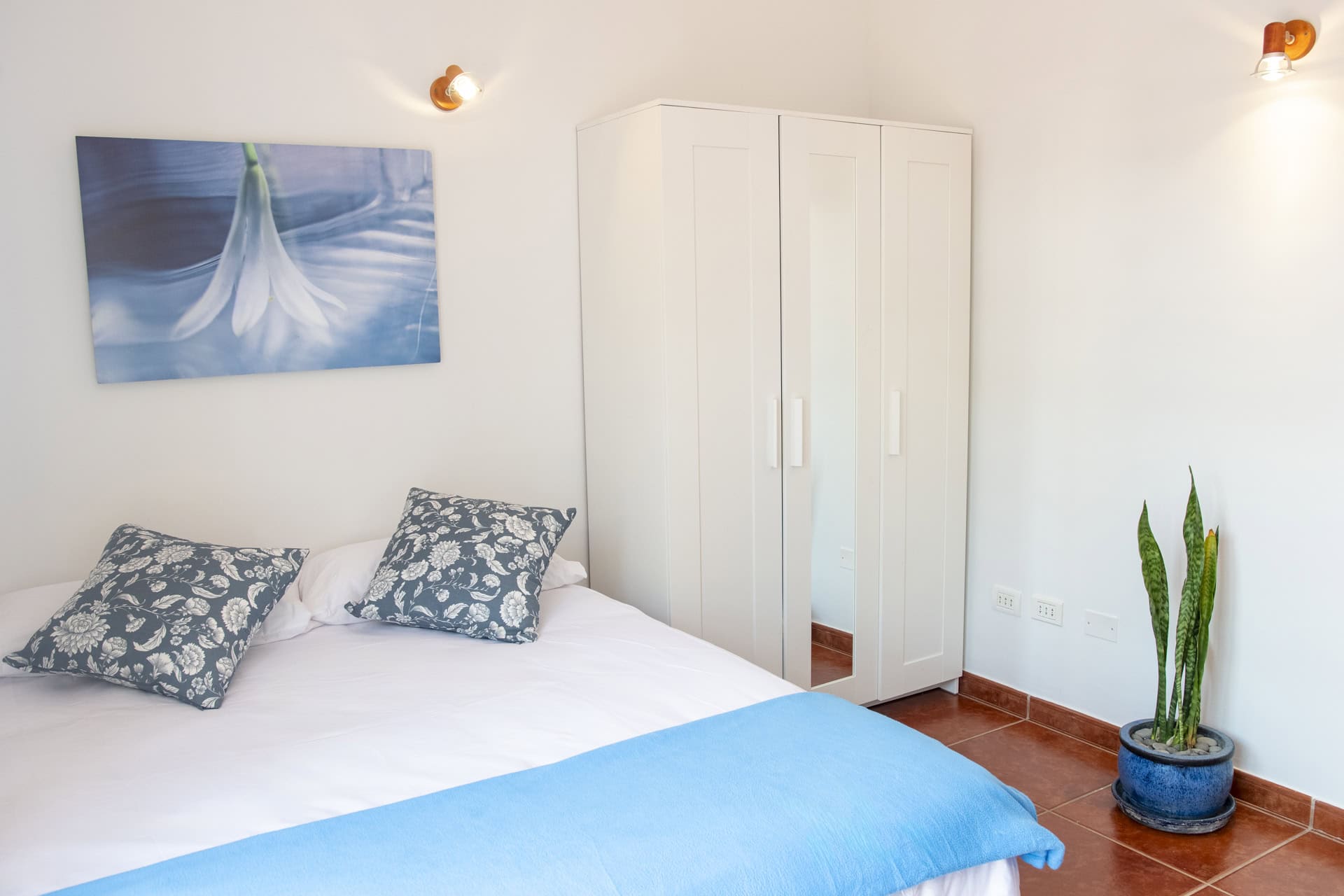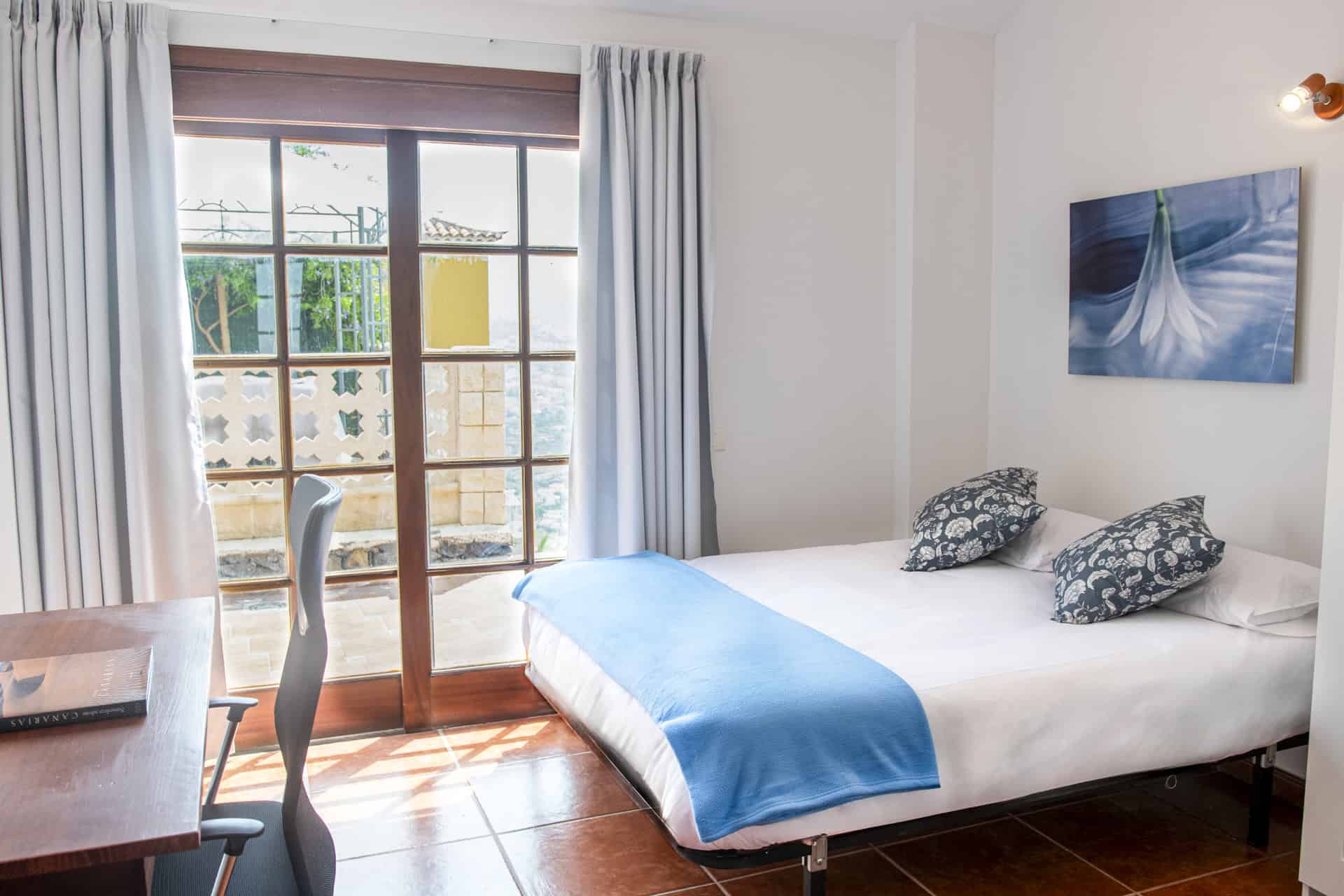 The Bollullo room combines privacy and comfort with a double bed, shared bathroom, and direct access to the terrace. Perfect for couples or individual travelers who want a quiet place to relax, work, and enjoy the natural setting.