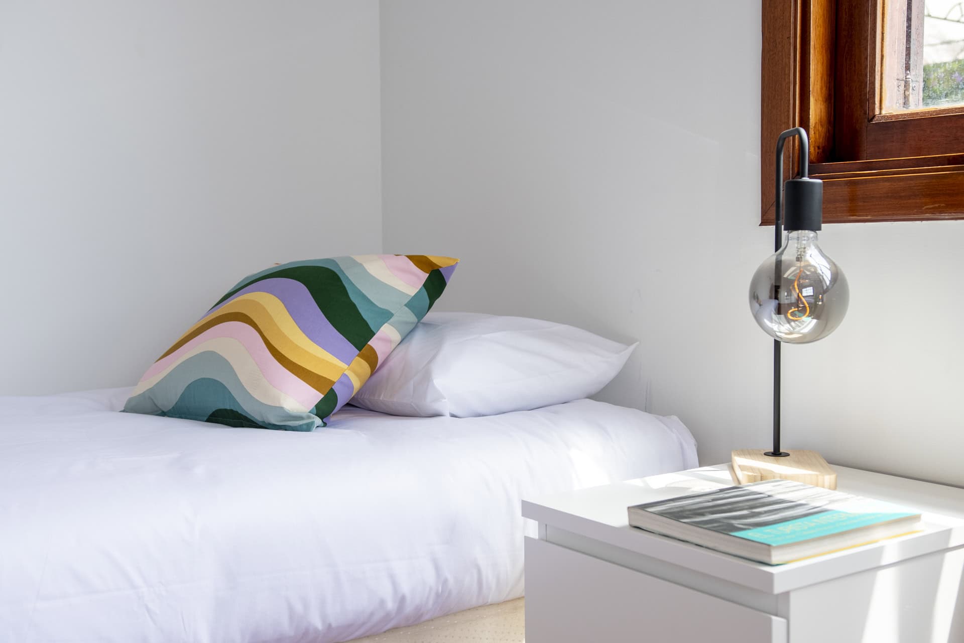 The Canarios shared room features two single beds and access to a common bathroom. Designed for flexible travelers, it combines comfort with the opportunity to meet new people in a simple, functional setting.